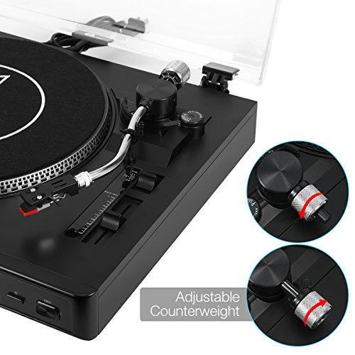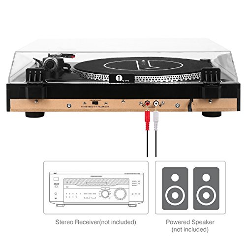 1byone 3 Speed Semi Automatically Belt Driven Turntable with Magnetic Phono Cartridge, Adjustable Counterweight, USB Vinyl to MP3 Record Player