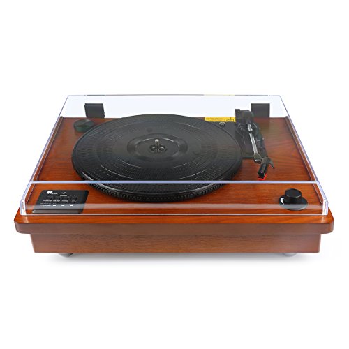 1byone Belt Driven Turntable with Built in Stereo Speaker, Wireless Connection Vintage Style Record Player, Vinyl to MP3 Recording, Natural Wood