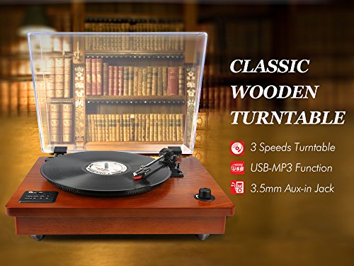 • Traditional Style - solid wood appearance, dust cover, and selectable 33/45/78RPM speeds settings.