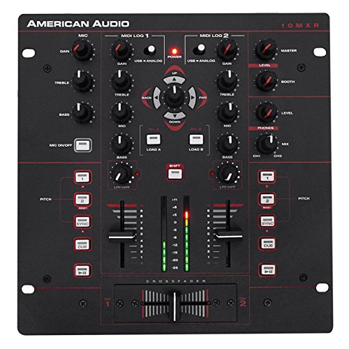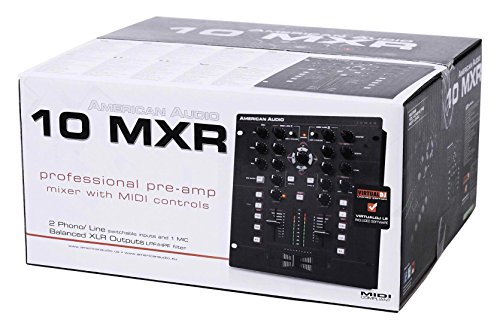 - American Audio 10 MXR 2-Ch. DJ Mixer w/ Midi/Analog Control+Built-in DSP. 10-inch, 2-Channel MIDILOGTM Mixer (compatible with any "Midi Learn" Software or Analog Inputs - such as CD Players, Turntables, etc.). Inputs: 2 Line, 2 Phono, 1 Mic. 18 On-board Midi Control Buttons (Mapable). MIDI interface (USB MIDI I/O)