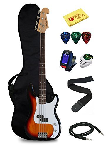 Crescent Electric Bass Guitar Starter Kit – Sunburst Color (Includes CrescentTM Digital E-Tuner)