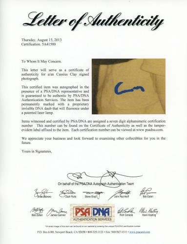 This photograph has been personally hand-signed by Muhammad Ali. It comes with a tamper-evident label and a letter of authenticity from PSA/DNA. This process helps to ensure that the product purchased is authentic and eliminates any possibility of duplication or fraud. SportsMemorabilia firmly stands behind every product offered on our site with a lifetime authenticity guarantee that each signature is 100% authentic. Muhammad Ali memorabilia. memorabilia