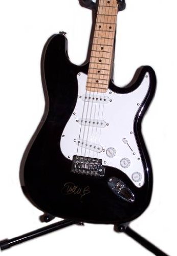 This is an Eleca black electric guitar that has been hand-signed by John Mayer. The signature has been certified authentic by an independent third party authenticator and will come with a Certificate of Authenticity. Each COA has a unique serial number which can used to verify authenticity at anytime. The guitar is full sized and fully functional.