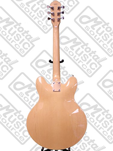 Features: · Classic Semi-Hollow Body Style · Mahogany Double Cutaway · Maple Bolt-On Neck · Rosewood Fingerboard · Tune-O-Matic Bridge with Stop Tailpiece · 2 Volume and 2 Tone Controls · 3-Way Pickup Selector · Chrome Die Cast Tuners · 2 Humbucker Pickups · Overall Length: 40.5″ · Lower Bout: 16.5″ · Depth: 2″ · Scale Length: 24-3/4″ · Nut Width: 1-11/16″ · Color: Natural · Model: OE30FN