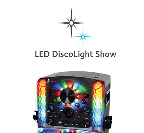 Your party guests will thank you when you turn on this awesome karaoke system packed with incredible features for you to create fun-lasting singable moments. This system lets you play your music CDs and CDGs or stream audio via your Bluetooth compatible devices. Follow the karaoke lyrics on your TV screen via the included RCA cables. Record your voice performances to the integrated USB jack. Built with over 40 multi-colored LED lights that synchronize to the music plus speakers in wood cabinets for a crispy sound, you are party-ready at a moment notice!