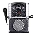 - Built-In speaker in wood cabin for a crispy sound. Supports two microphones with separate volume control for duets. One wired microphone included.