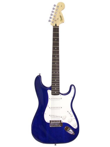 Squier by Fender “Stop Dreaming, Start Playing” Set: Affinity Series Strat with Fender Frontman 10G Amp, Tuner, Instructional DVD, Gig Bag, Cable, Strap, and Picks – Transparent Blue