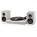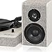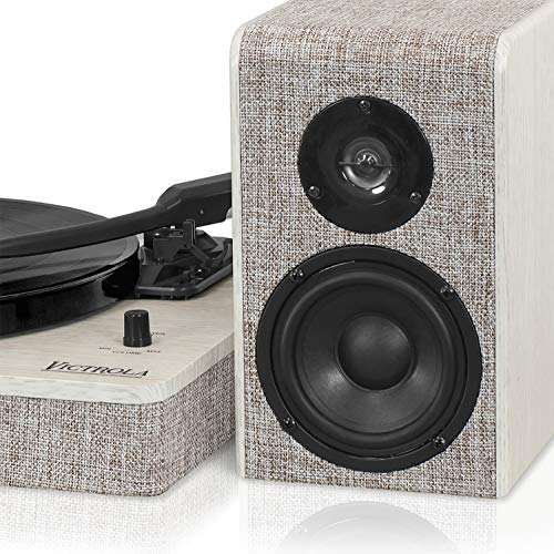 Victrola Modern 3-Speed Bluetooth Turntable with 50 Watt Speakers, White Wood and Linen Fabric Finish