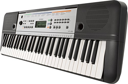 The Yamaha YPT-255 Portable Keyboard is packed full of great sounds and features, ideal for aspiring musicians who are just starting out. Use the on-board lesson feature, Yamaha Education Suite (Y.E.S.) to learn the 100 preset songs, or take advantage of 385 instrument Voices and 100 Styles to experiment and create your own music. The Aux Line Input turns the YPT-255 into a speaker system for your MP3 player so you can play along or just listen, all for a very affordable price. Additional features include the Yamaha Education Suite built-in lessons that let users teach themselves to play, a new power-saving mode and 61 full-sized keys. The Yamaha YPT240 is an affordable model that also lets users play along with a band or use the dedicated Portable Grand button to instantly call-up a great sounding grand piano. This package also comes with the Samson HP30 closed back studio headphones that feature a comfortable, padded headband and ear cups with 40mm drivers and a frequency range of 20 to 20,000 Hz. These are loud earphones with an impedance rating of 32 Ohms. It also has a 9 ft. cord with 3.5mm stereo plug and 1/4 inch (6.3mm) plug adapter. The World Tour Keyboard Stand is a heavy-duty, single braced, steel, keyboard stand that will hold 49, 61, 76 and 88-key keyboards with a maximum weight of 130 lbs. Secure-Lock height adjustment from 25.25 to 38.75 inches for seated to standing performance positions. There will be no need for batteries either with the included power supply.